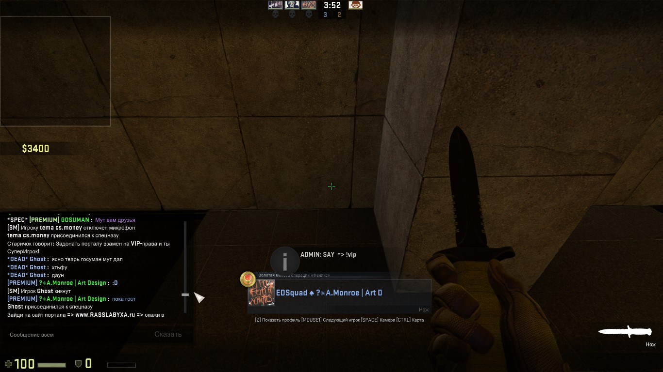 | 1. STEAM_0:1:85615711 2. xZero 3. пост 4. 1 час 5. Багоюз(2ой террорист)Добавлено (17 Окт 2016, 20:56) --------------------------------------------- 1. STEAM_0:0:178082389 2. Ripper! 3. 19:40 4. 1 час 5. Багоюз(2ой террорист)