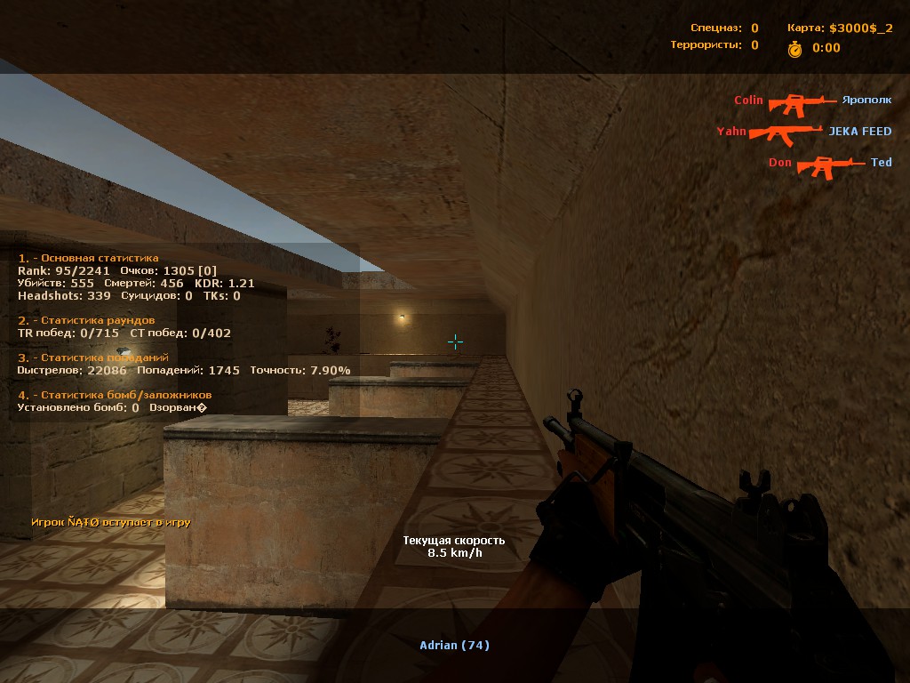 1)Wolt 2)1997 3)Москва, Зеленоград 4)STEAM_0:0:76380316 5)Профиль http://steamcommunity.com/profiles/76561198113026360/ 6)http://www.gametracker.com/server_info/cs1.rasslabyxa.ru:27058/ 7)261час 8)DeathRun 9)Давно играю на ваши серверах, но больше мне пригляделся сервер с ловушками и хотелось бы стать администратором, так как заходят неадекватные люди а администраторов нету 10) Был ли опыт администрирования и на каких серверах - ссылки на статистику на этих серверах и регистрационные данные:Нет 11)Состою в клане Embleys 12)- 13)Сколько времени в сутки можешь посвятить присутствию на сервере:4-5 часов ежедневно 14)Контакты: skype: Eneytl 15) Согласны ли Вы с правилами поведения в игре на серверах РАССЛАБУХА.ру: Правила мною прочитаны, с правилами согласен. Обязуюсь соблюдать и следить за соблюдением данных правил другими игроками 16)-