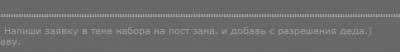 Мы проводим набор инициативных и адекватных людей для администрирования игровых серверов и работы с сайтом. Принять участие в развитии серверов можно в случае одобрения оставленной вами заявки. Вы должны разъяснить нам свои способности, желания и возможности. Рассказать для чего Вам нужна модерка и т.д. Здесь подаются заявки исключительно для модерирования сервера или форума. По поводу повышения в должности, руководство вас сразу же осведомит.