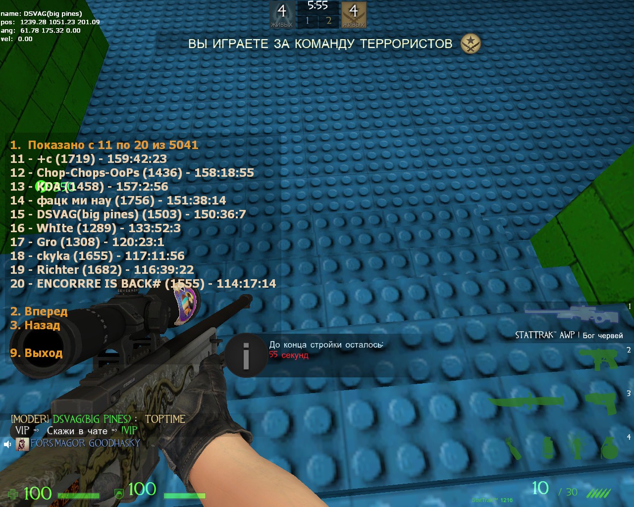 1) Прописываем команду toptime в чат на сервере