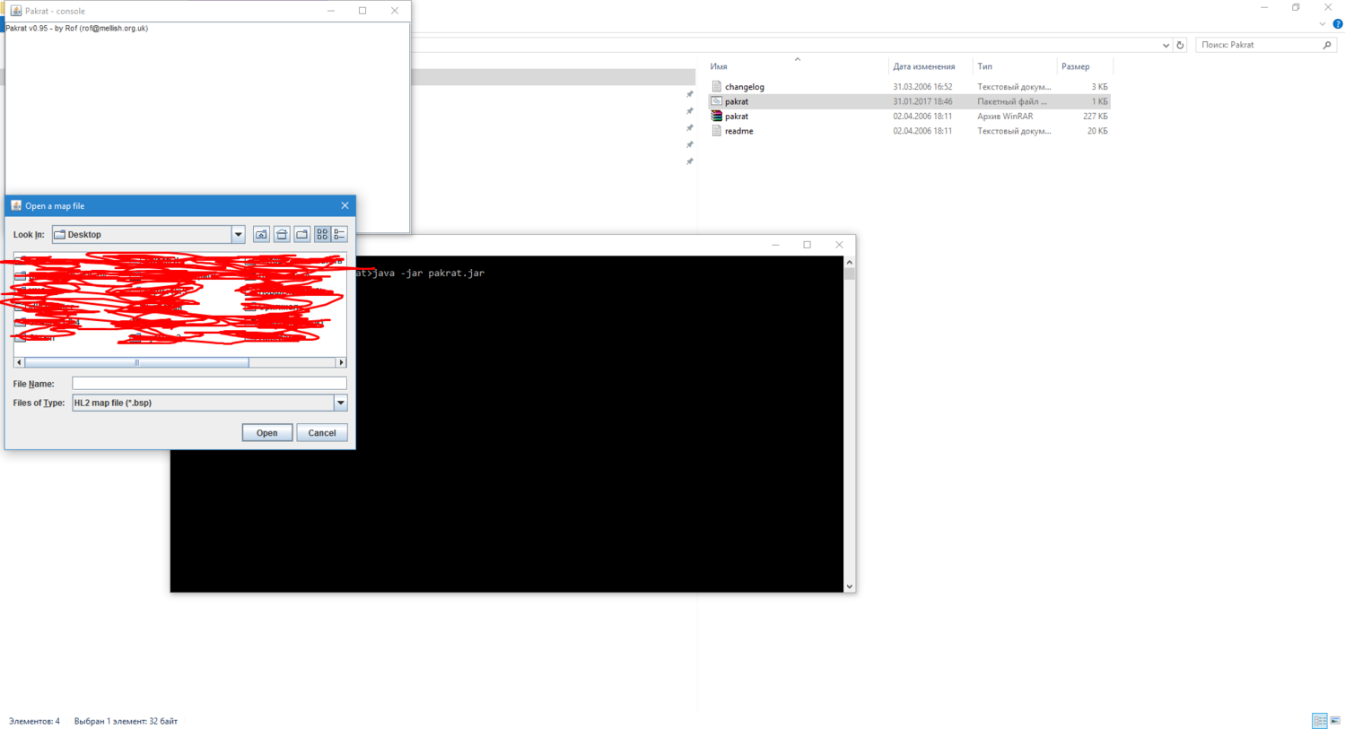 | Desmond_Ferrcon, Когда открываешь Pakrat(батник), он сразу просит выбрать файл для открытия, я открываю .bsp Ну вот смотри сам: