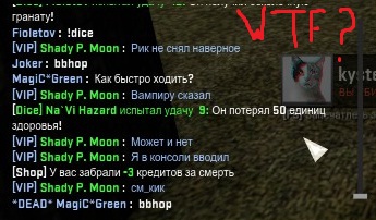 | Цитата а то обычные игроки тоже хотят почувствовать себя "крутыми". Вот для этого и нужна випка. Цитата Можно ли добавить в плагин !dice скаут с патронами. Просто так для разнообразия. Что за хрень ты несешь?