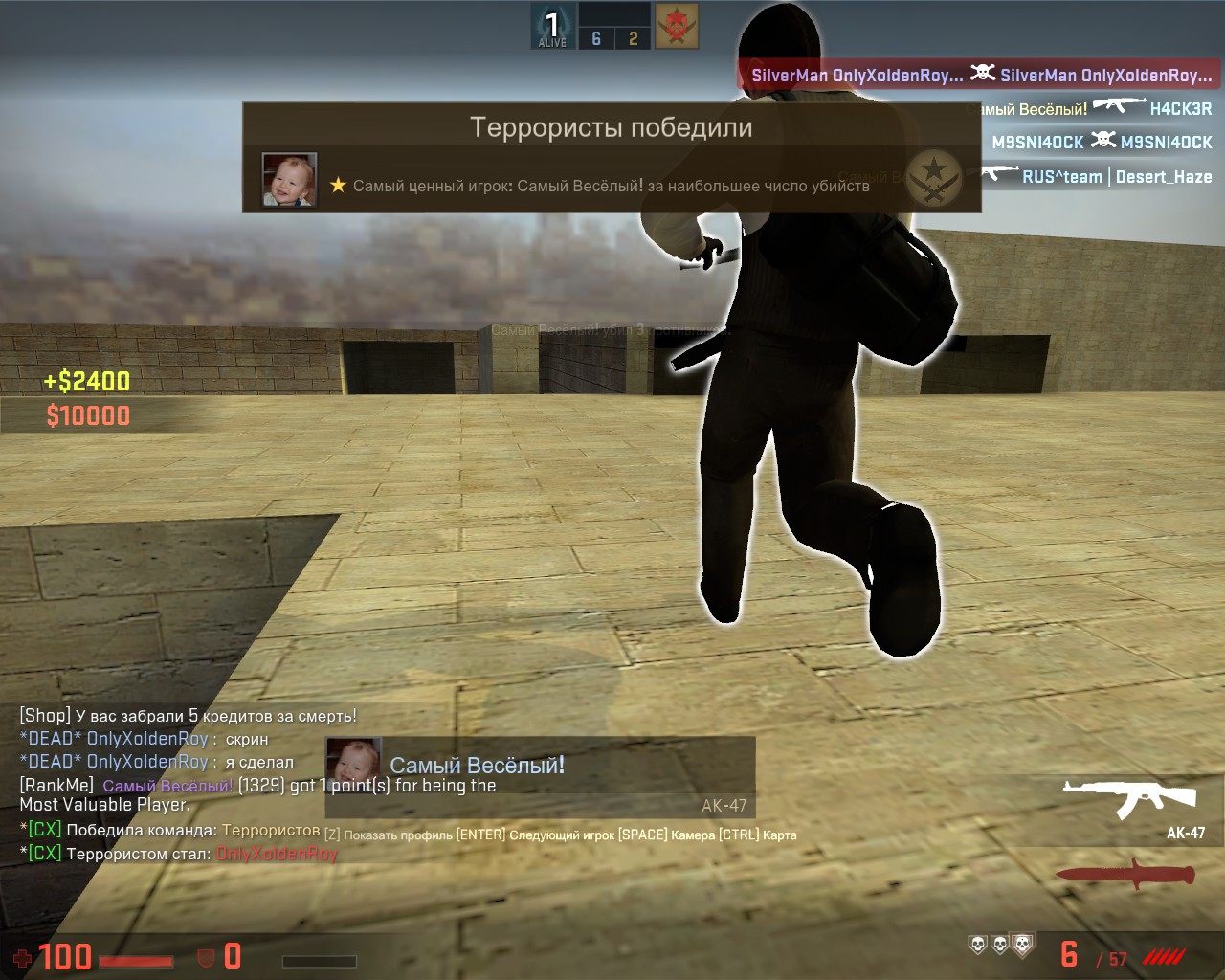 1)Ваш никнейм в игре: Няш-мяш, OnlyXoldenRoy 2)Кто вас обидел(обычный игрок): Самый весёлый! а) На карте aztecan, багом взял ак-47 и начал убивать врагов.