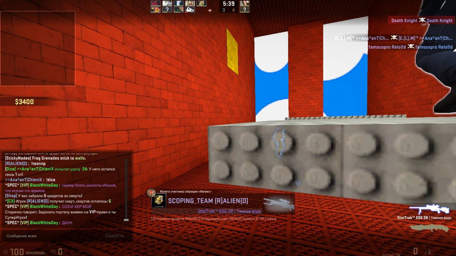 1) Ваш никнейм: Fuzzy 2) Кто вас обидел: Малой ёж(Skype,Slark) а) Статус игрока: обычный игрок б) Его стим: http://steamcommunity.com/id/Macl94/ в) Его стим ID: STEAM_0:1:95764187 3) Прочее: На карте aztecan за сторону Т подобрал калаш и начал убивать СT в отсутствии администрации. 4) Скрин: http://snag.gy/xpOMo.jpg сведетели: alim,GoDoto