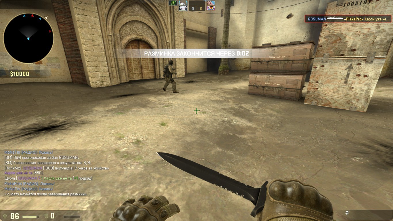 | И че это такое. Я когда увидел этот сервер кровь из глаз потекла. Во-первых, что за разминка после смены карты? С ГРАНАТАМИ! Вы шо сума сошли :poor: Во-вторых, почему онли лего карты? (Типо Lego_9 lego_8 шо эт такое), ох индию забыл. Есть миллион мап под авп сервера. Интернет хоть открывайте когда-нибудь. B) Во-третьих, почему я поиграл на сервере 3 минуты и сразу карта меняется? (типо ограниченность раундов стоит непонятная. типо штук 10 раундов сыграл - смена карты, бред полнейший). В-четвертых, почему после окончания раунда я должен ждать 5секунд? Почему нельзя сделать все фактически мгновенно,а не как на матчмейкинге,где ты оружие,например ищешь, после раунда. В-пятых, когда я видел,что вы ставили плагин "Дуэль", это я думал,когда вы 1x1 остаетесь можно на ножах сыграть. Типо как на сурфе стоит в ксс. А тут в чатике какая-та хрень пишется. (как в кс го пропсе). Зачем вам это? Серьезно новогодняя елочка,а не сервер. В-шестых, почему после смены карты сразу rtv можно писать? Вообще даже карту посмотреть не успел,а уже смена >( В-седьмых, почему стоит 60минут до окончания раунда? Даже на джайле меньше в 3 раза,хотя там геймплей долгий. В-восьмых, 64 тикрейт Круто(нет)