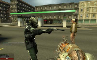 | ВАФЛЯ, ты там ушел куда-то, я подошел к менту и говорю, всем стоять на месте, это ограбление грави пушкой, деньги ганите... Мент быстро достал пест и говорит, что пойдем в участок, ты же грабишь и т.д. Он меня ранил в коленку (урод блин ) Я говорю ему, что буду сопротивляться и достал пест и убил его, он потом начал там наезжать на меня и я его задавил машиной