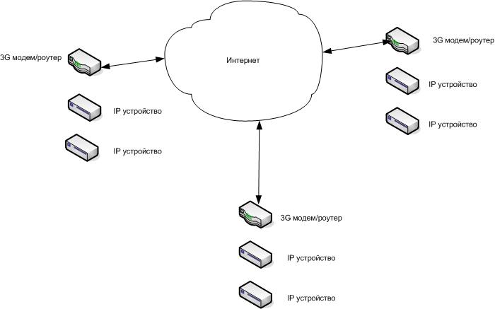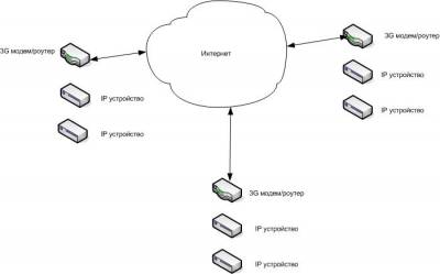 Получается так, есть 3G модем с функцией роутера - модем у меня имеет статичный реальный IP адрес а к нему подключается IP контролер - он в свою очередь будет иметь не реальный IP адрес, который ему выдаст модем-роутер. А имея не реальный IP он не сможет увидеть другие устройства, он сможет видеть только реальный IP адреса других модемов. А как сделать что бы они видел устройства которые подключены к другим модемам ?