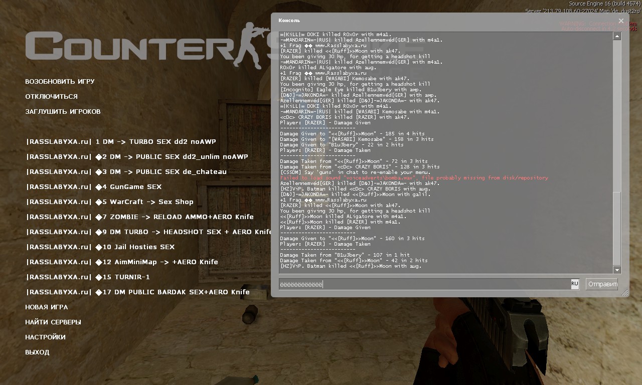 Вопрос: не могу зайти на сервер cs2.rasslabyxa.ru:27016. Выдает такую штуку: Ответ: Вам запрещен доступ на сервер по каким либо причинам. Жалобу на несправедливость подавать ТУТ