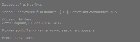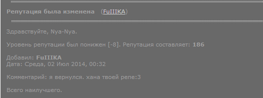 | Выдайте Nya NYa Необоснованное понижение репутации! Мне.