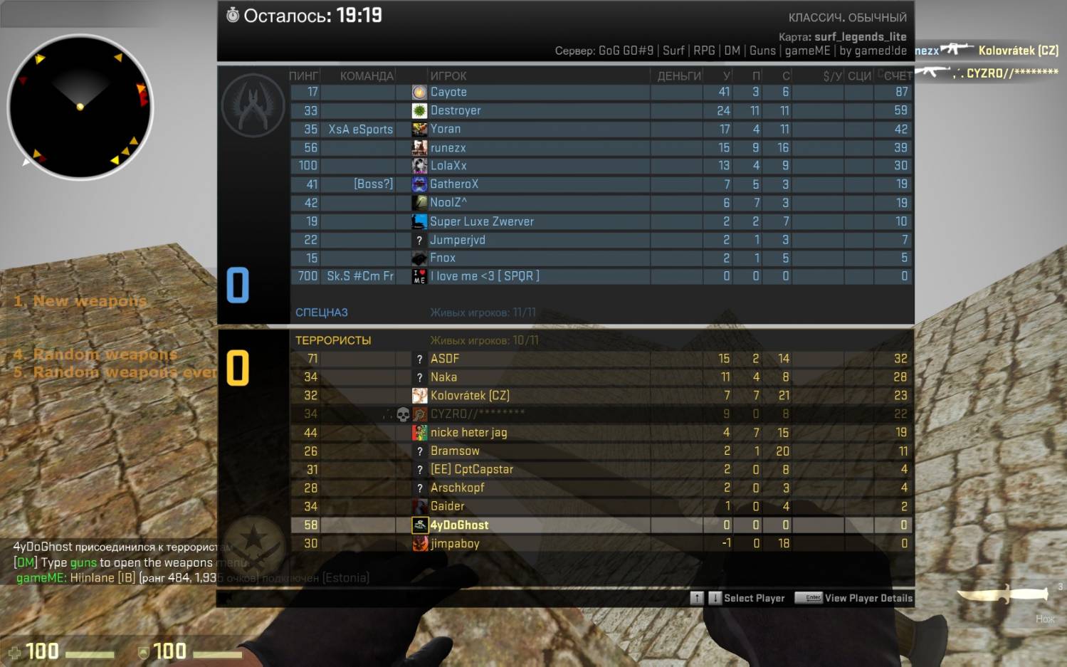 | Забыли добавить Зомби, Хедшот, Прятки, гангейм