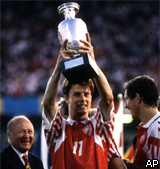 Однако сенсации начались уже на групповом турнире – в плей-офф Дания вышла. Затем в полуфинале по пенальти были повержены голландцы, действующие чемпионы Европы, а в финале Дания выиграла у Германии со счетом 2-0, став едва ли не главной сенсацией в истории турнира (во всяком случае, она точно была таковой до 2004 года).
