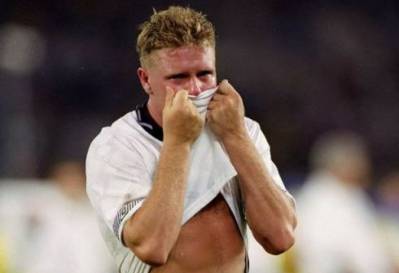 Эмоции полузащитника сборной Англии Пола ГАСКОЙНА из-за желтой карточки в полуфинальном матче чемпионата мира-1990 с Германией, которая зафиксировала: он пропустит следующую встречу.