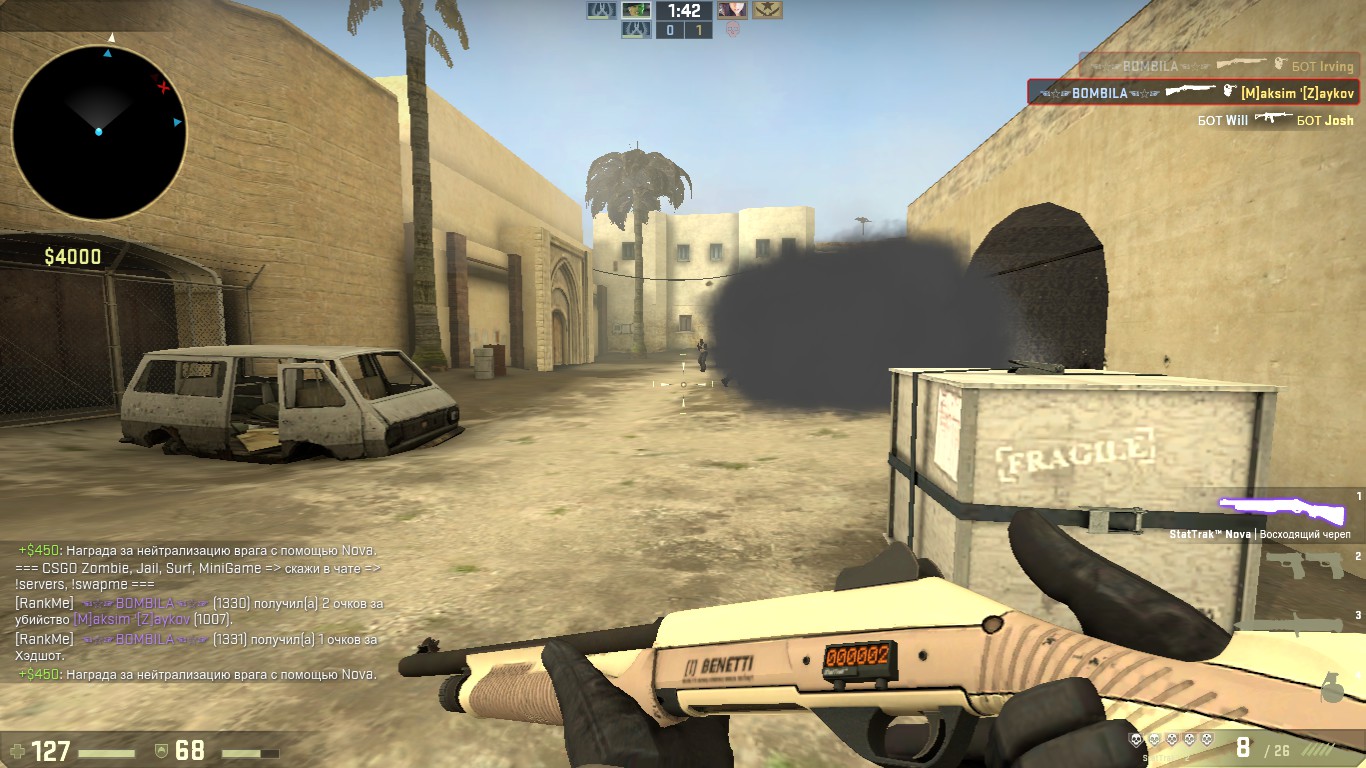 Можешь зайти на мой профиль в стим и все там посмотреть. Аватар у меня всегда такой и есть ребята, которые это подтвердят. Так же оружие в инвентаре. И там видно, что я играю с ботами один