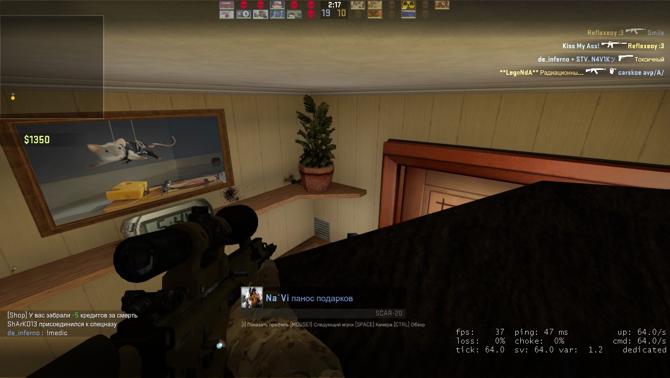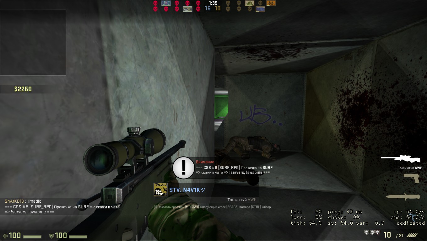 | 1)GNAT 2)Сразу несколько игроков (4 и более) а)Обычные игроки стимы в демо. (status в консоли) 4) Маты, оскорбления, AWP 5) http://yadi.sk/d/nzOyj8DMJgsQH