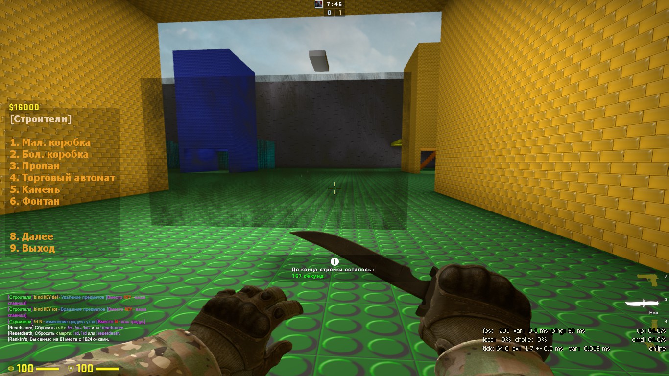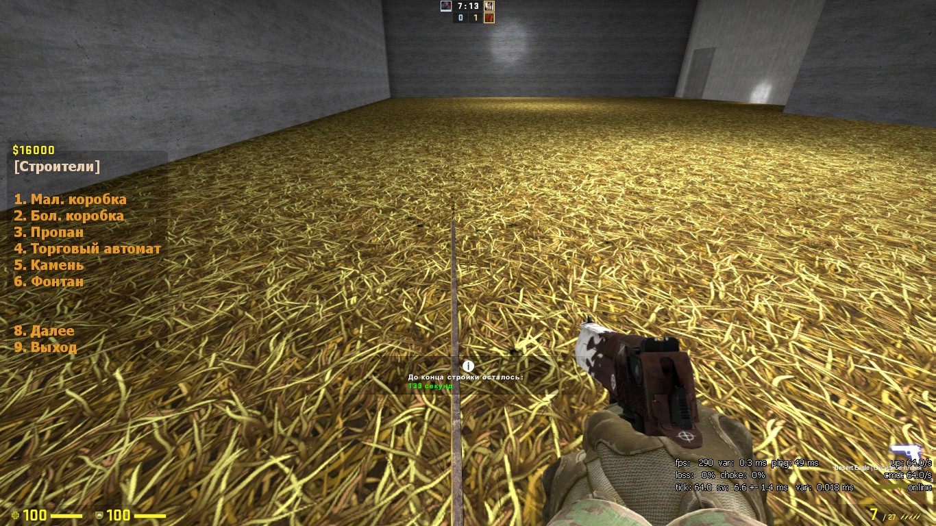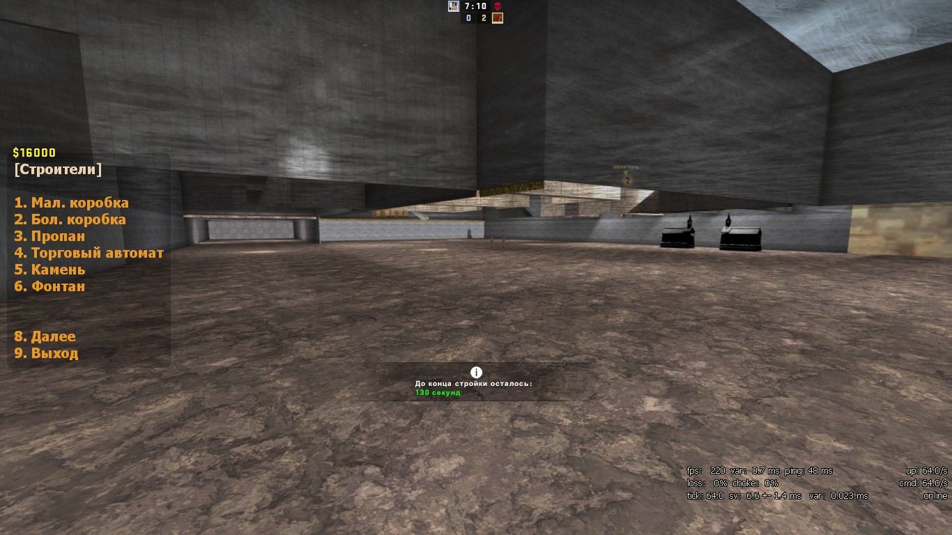 | Скринов не хватает , поэтому новый пост . Про вторую карту я могу сказать меньше , но тож особо не увидел смысла её изменения . Вроде так она называлась раньше props_dev_comeback_v3 ,а сейчас также дев - хоть все текстурки были изменены на лего ........ Вот что я заметил за 5 минут игры на ней . Вы добавили стекло , на карте где не было стекла ........ Добавили БОЛЬШЕ ПУСТОГО ПРОСТРАНСТВО с непонятным ..... сооружениям. Я вообще не понял что там , но также я не понял как там можно построить нычку. (забыл заскринить. ) Убило , что вы изменяете карты и та же не делаете их удобней. Вот одно из того что вы не делаете удобней . Большая коробка = 128 . А тут место как было больше 128и так и осталось.