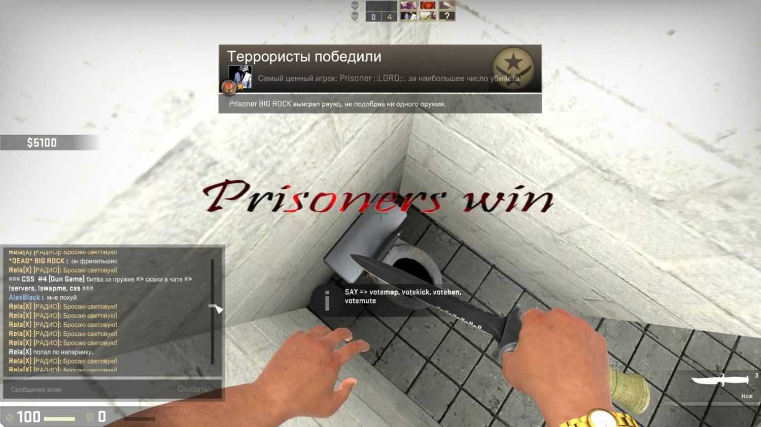 | Цитата IllidanStormrage (  ) 1) - Ваш ник в игре: Illidan Stormrage 2) - Ник администратора/игрока: Relax 3) - STEAM ID игрока: STEAM_1:1:81863629 4) - Нарушение администратора/игрока: Я выиграл в игре, после чего выбрал манго, а релакс меня шлепнул с уроном, я выбрал его, он меня опять шлепнул 2 раза по -99 хп! 5) - Сервер на которой произошло нарушение (во избежания ошибок) : 6) - Док-во: http://steamcommunity.com/profiles/76561198065980669/screenshots/ . Больше достать доказательств не мог 7) - Дата нарушения: пост 8) - Комментарий: 9)- Тики или тайм код(для видео) Ничего, я нашёл доказательства.