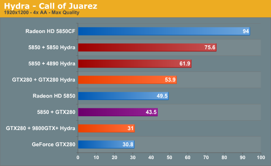 5850 + NVIDIA GeForce GTX 280 бесполезно. 2) Объединять 2 карты одинаковых ATI чипом Hydra всегда хуже, чем в режиме